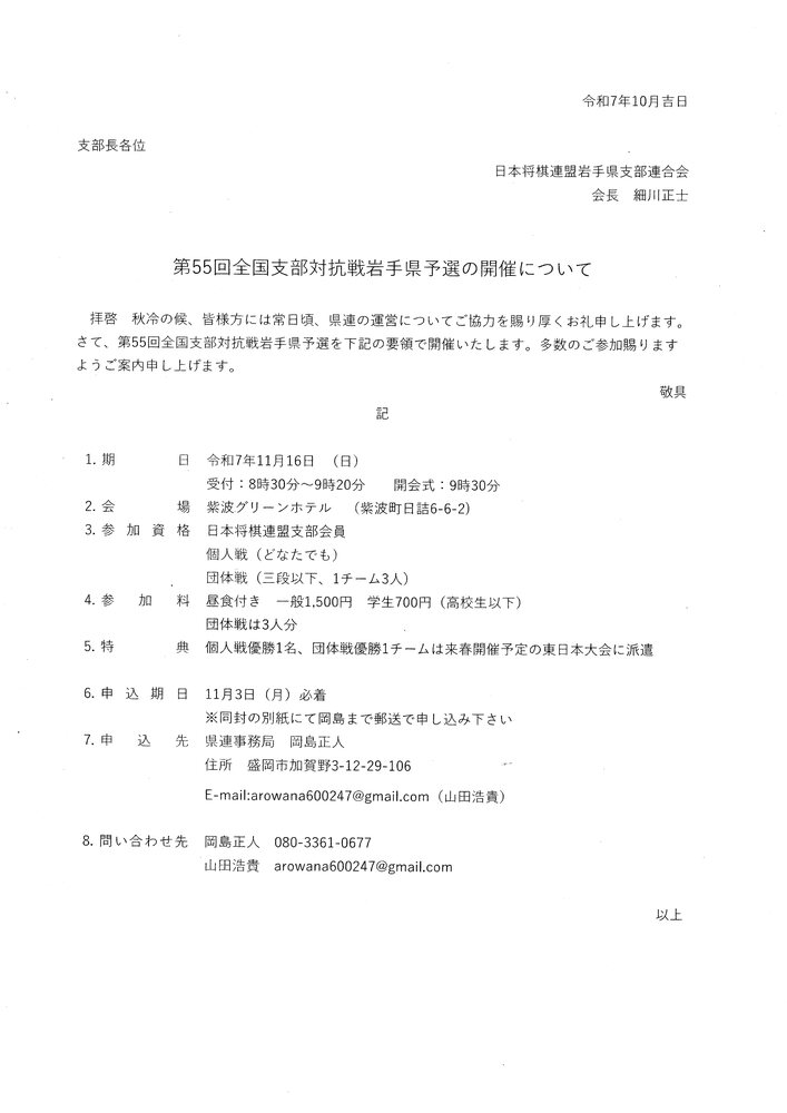 (日将連)盛岡北支部&いわて将棋館予定カ ...